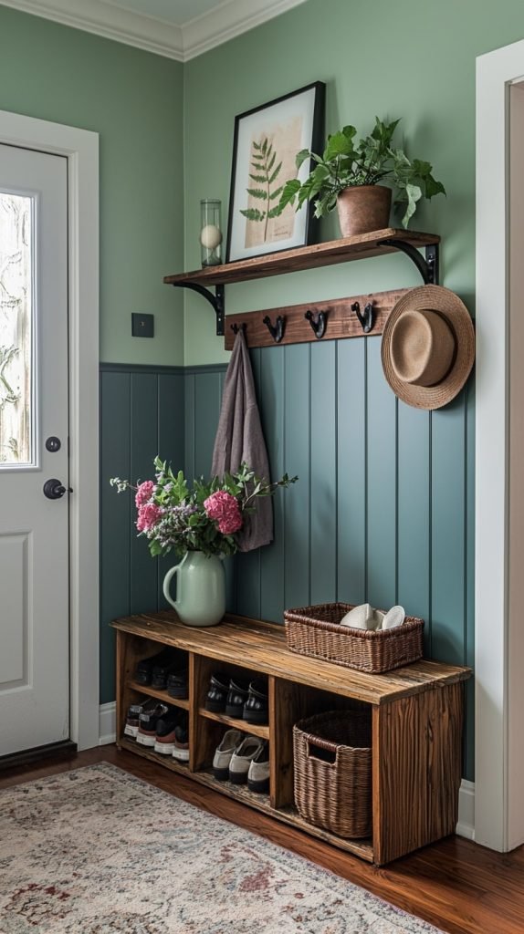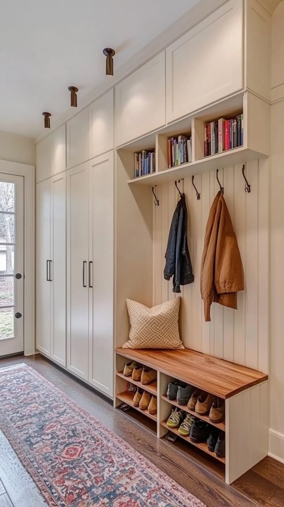 3. Built-In Mudroom Storage with Bench