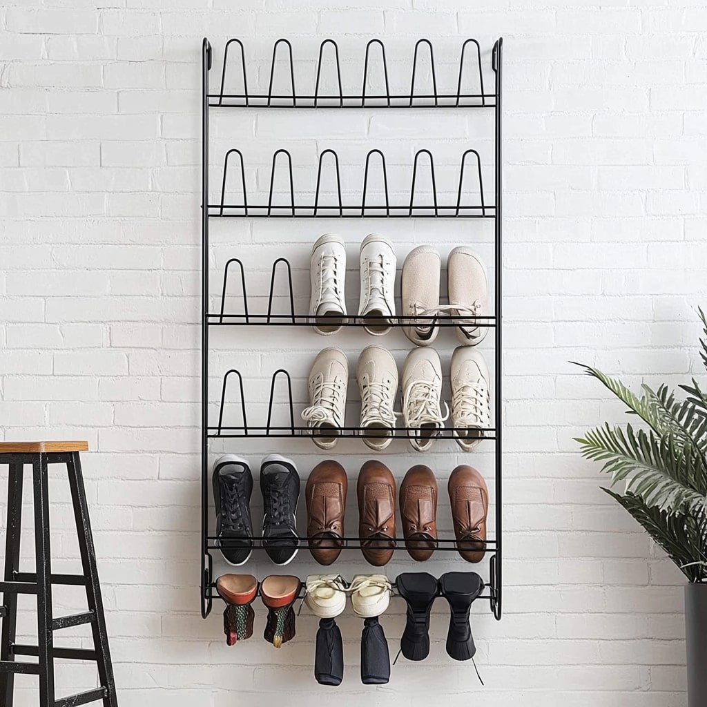 Wall-Mounted Black Metal Shoe Rack