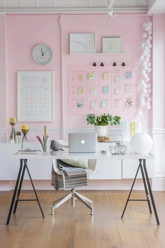 A vibrant pink backdrop energizes this home office, perfect for sparking creativity.